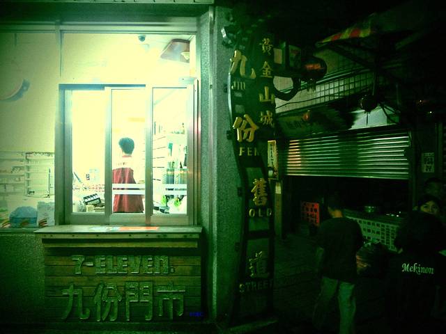 九份老街站下車,90%都從超商旁進入九份商圈。