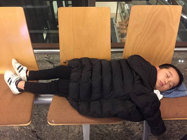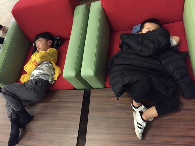 晚上直接在机场麦当劳解决。有了上一次出国的经验,这次带着小V坐红眼航班也没有那么多担心了。