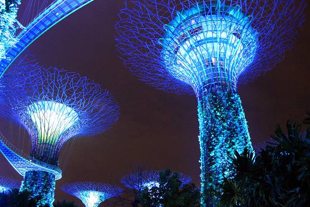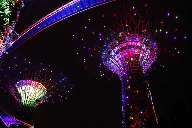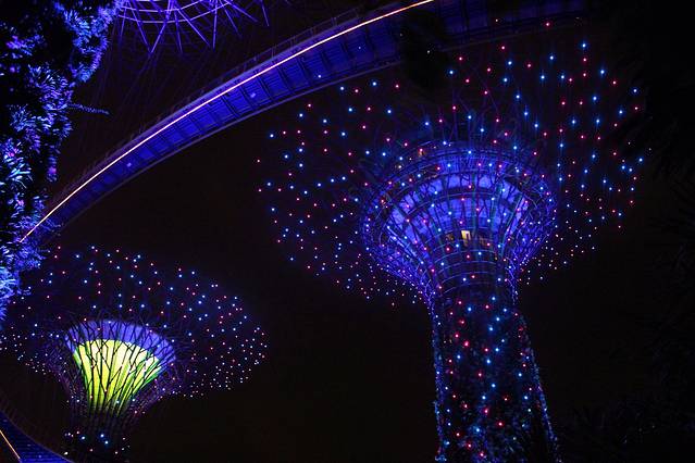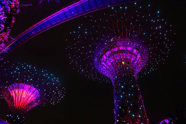 酒足饭饱之后,大家散步去滨海湾花园看灯光秀。