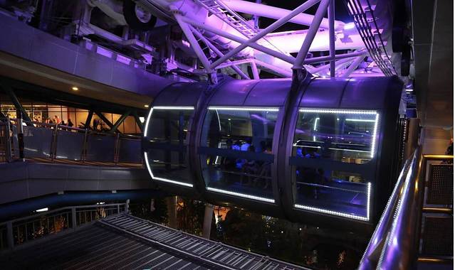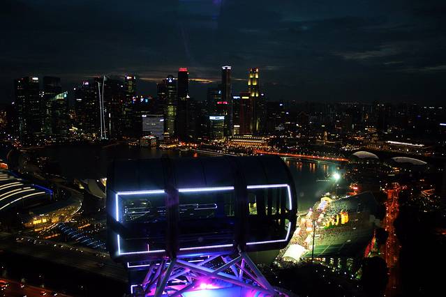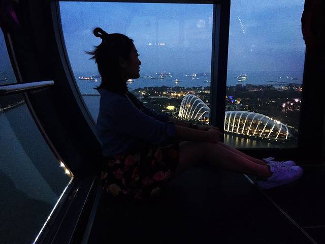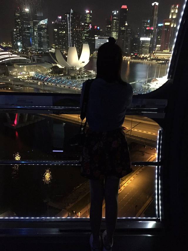晚上五点半左右,我们坐上了新加坡摩天轮。