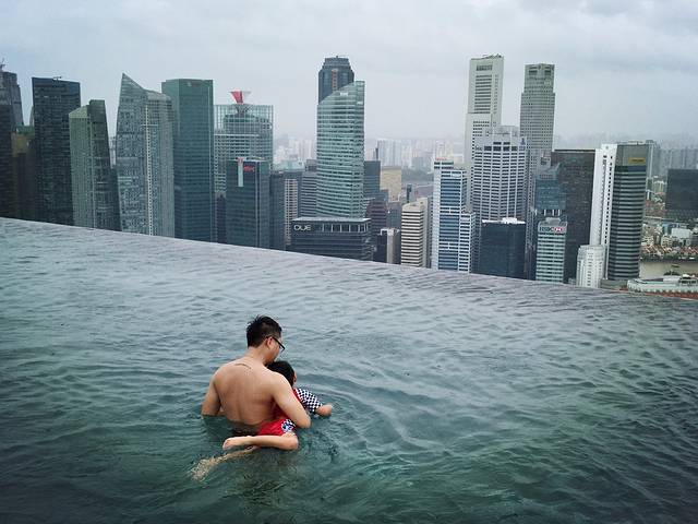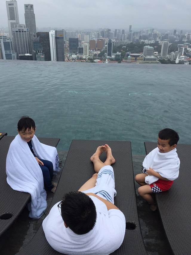 我们预定了金沙酒店空中花园和无边泳池的门票,期间带上两个小的上去游了个泳俯瞰了下整个狮城。