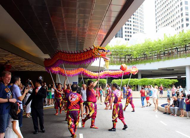 吃完早饭准备出发时,酒店大堂正好在舞龙舞狮闹新春,洋溢着浓厚的华人年味。