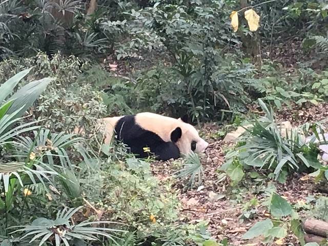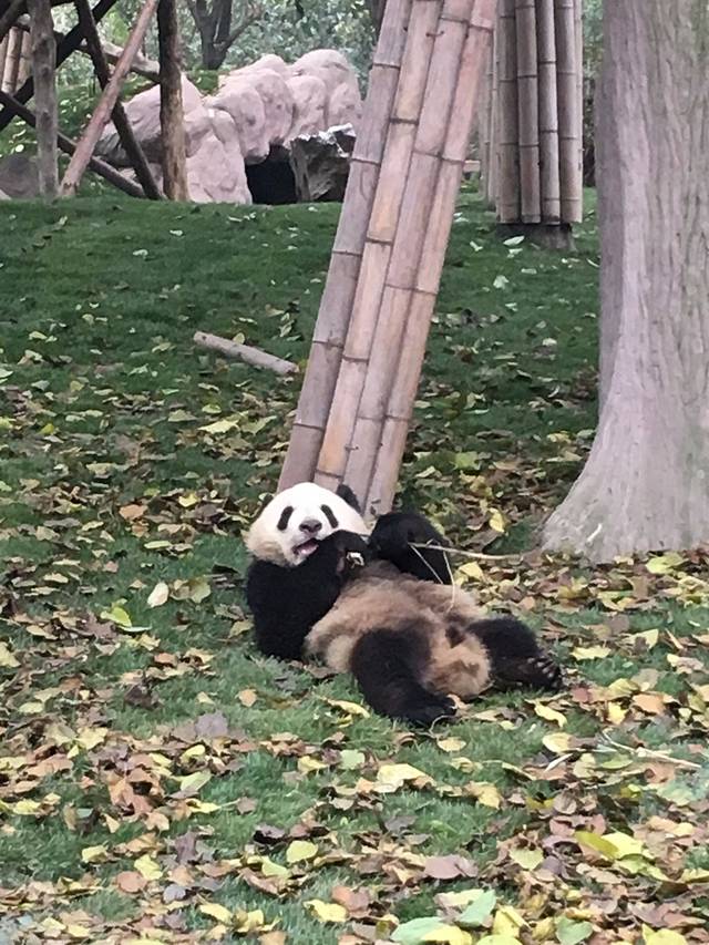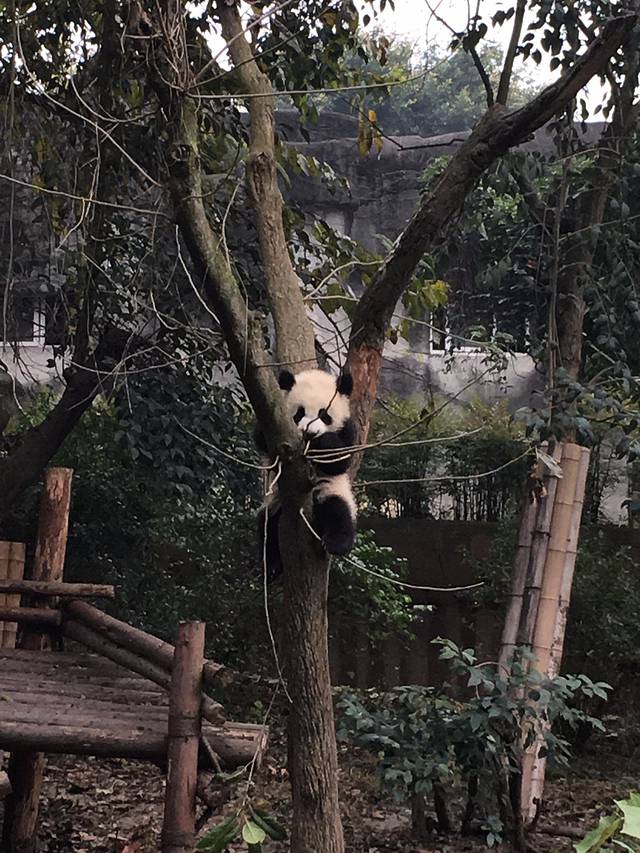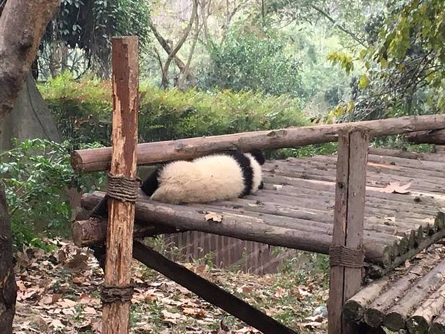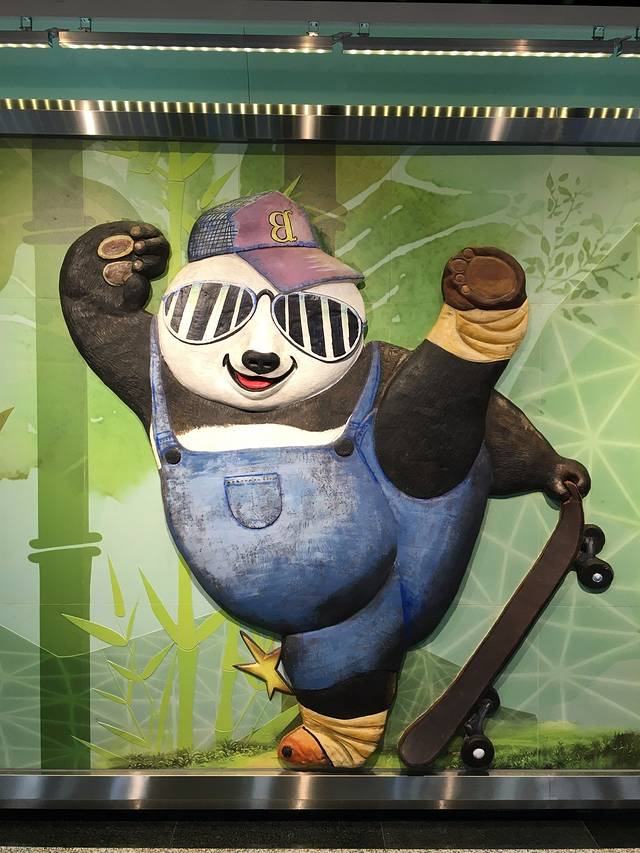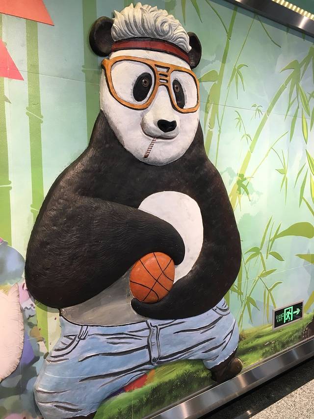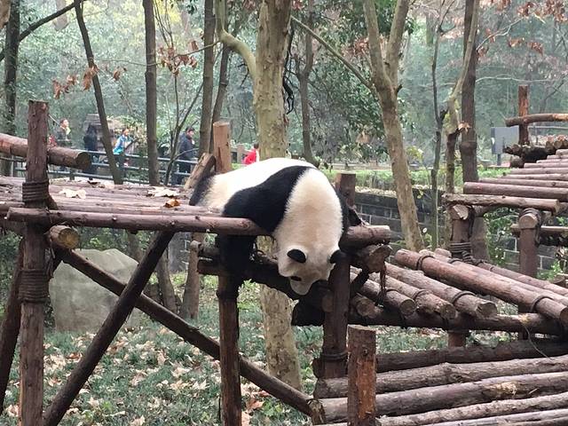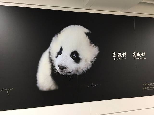 去大熊猫基地可以网上买门票,50多块,不算贵,熊猫基地很大,里面环境很不错,坐地铁到熊猫大道站,出站后就看到墙上的熊猫装扮,然后就在那里啪啪啪,对,就是拍照,啪完了,不,拍完了出站就有简途的车,免费送到熊猫基地门口,然后刷二维码进园就好。