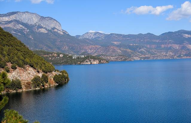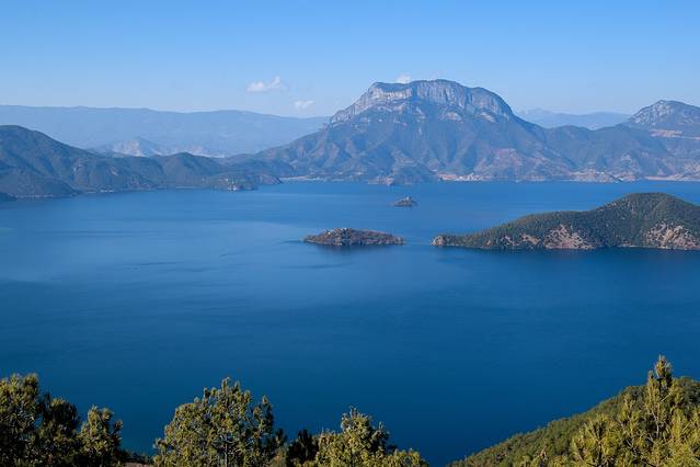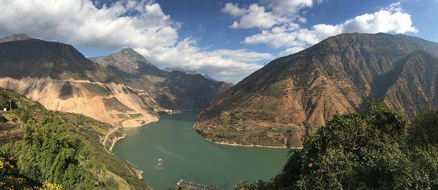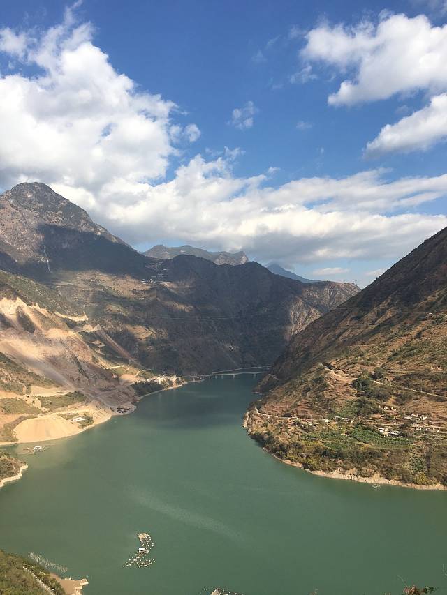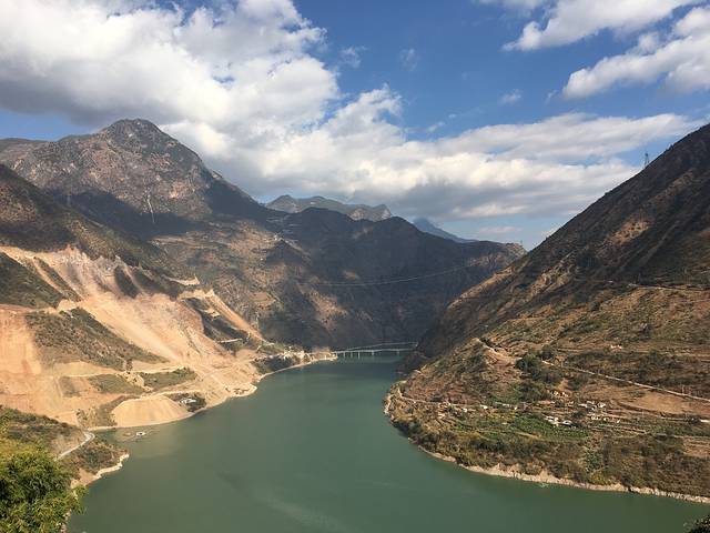 第二天前往泸沽湖,十点出发,车上碰到一对情侣吵架,听起来好像是因为换位子的事情,男的没有帮女的,女的就发脾气,一直埋怨男的不向着她,最后哭了一个多小时,到了十八弯山路的时候终于不哭了,开始看风景。我看了看身旁安静的女友,感觉自己实在幸福的紧。车程有四个半小时,大巴限速,而且山路实在不好走,全是弯道,路途中的景色也是十分壮观。中间会停两到三站,大概一个多小时休息一次,其中有一个观景台,可以拍一拍天下第一湾什么的,绿色的水应该是金沙江。我个人观点是:拍照是次要的,眼观才是重要的,多看,少拍绝对不后悔,毕竟相机再好,还是不如眼睛好。