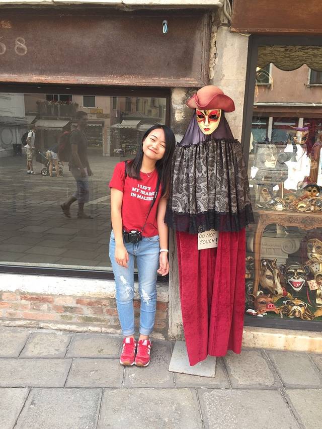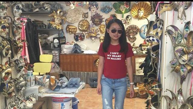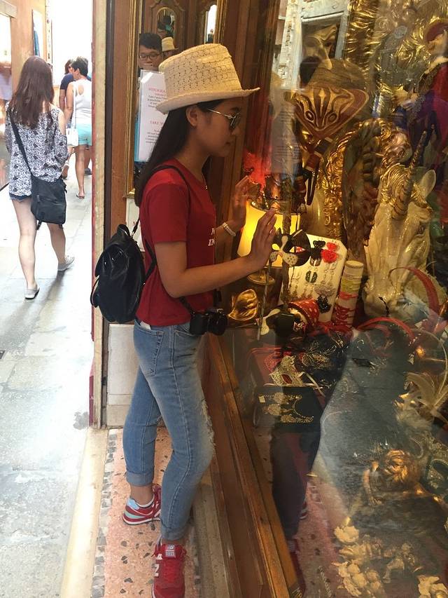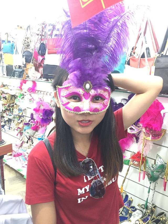 很多的意大利人开的面具店其实是不被无允许拍照了,所以来了一家国人开的礼品店试了made in china的一戴就整张脸沾满金粉的面具。他们的面具鼻子都超高,难道没有适合亚洲人脸型设计的面具么~