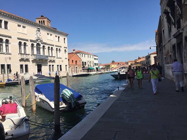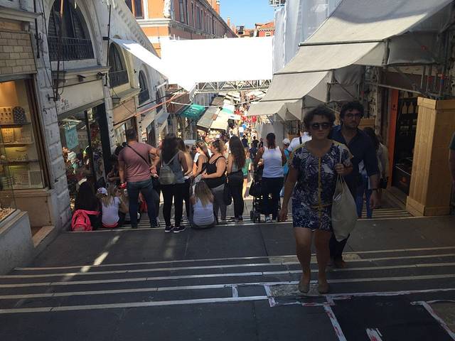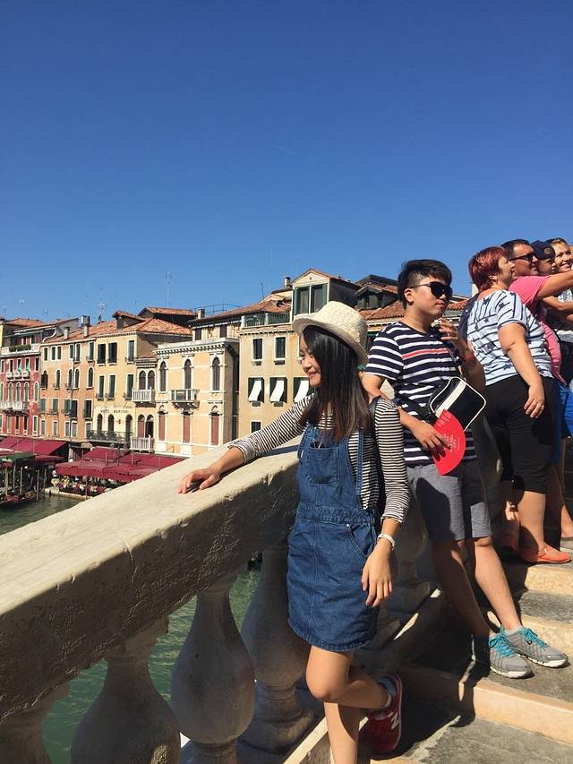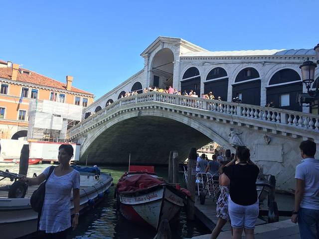 昨天可能太累了,所有很多主岛上的景点延迟到了第二天,现在看到的这座通往威尼斯市区的桥,叫做里亚托桥,也叫商业桥,桥上一半是游客,一半是商贩。