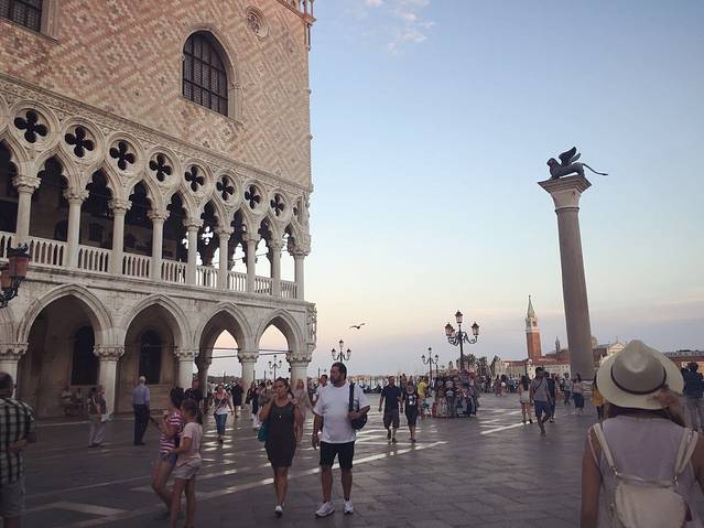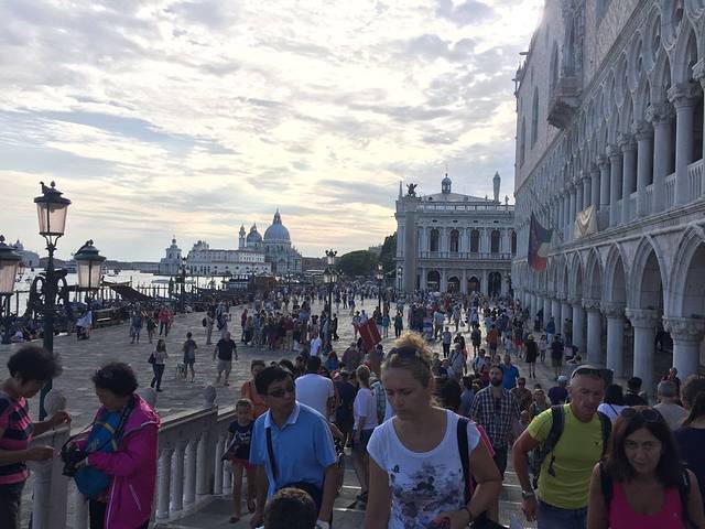 离开lido岛的时候太阳已经快下山了,本来计划时早上去圣马可钟楼登顶,但是因为早上队伍太长太阳太晒所以改到了下午,趁着太阳落山前我们马不停蹄的赶回了广场