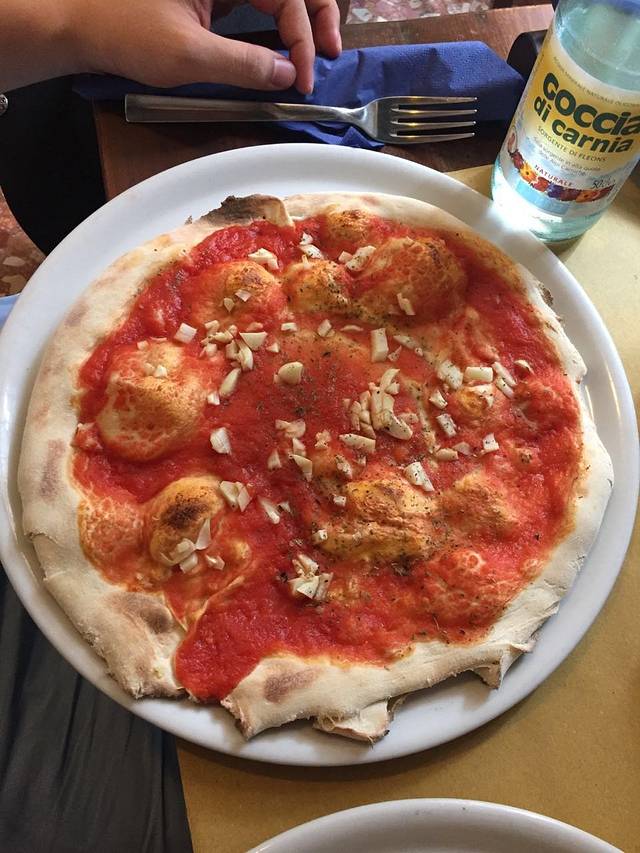 拖着重重行李的我们随便找了个餐馆坐坐,感觉这个时候之前做的餐馆攻略都可以扔了,这家是排名和评价比较靠前的餐馆,然后,这披萨,真的难吃哭了。我点了份都是芝士的意大利面。奶味超重,只吃了一半。