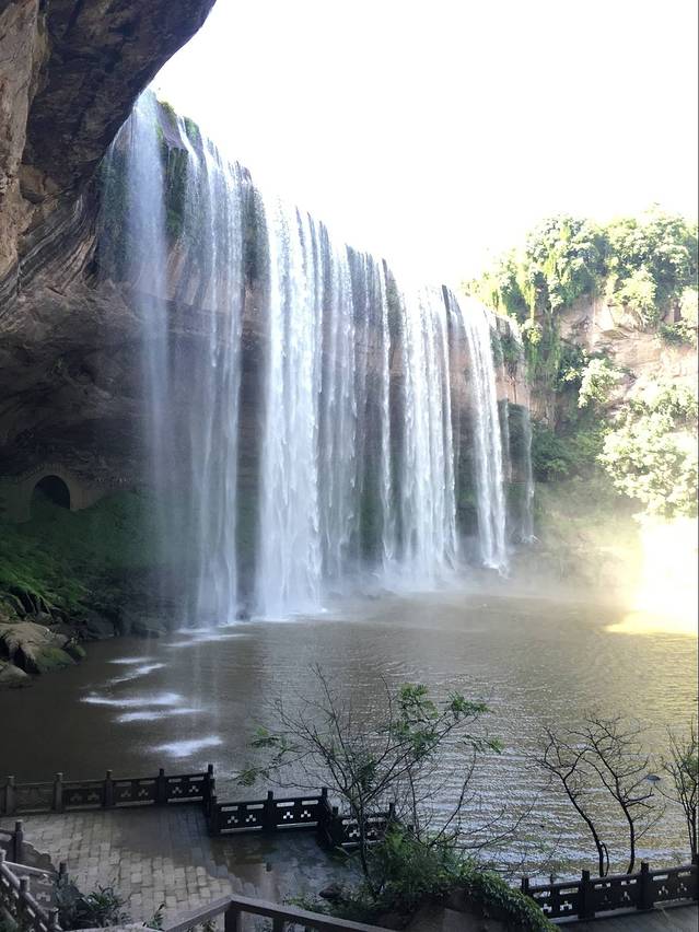 一下车就看见匾上的万州大瀑布五个字,给人一种挺气派的感觉呢。从整个构建外表看古代韵味浓浓的。勾起了我的好奇心,真想马上进去瞧一瞧呢!