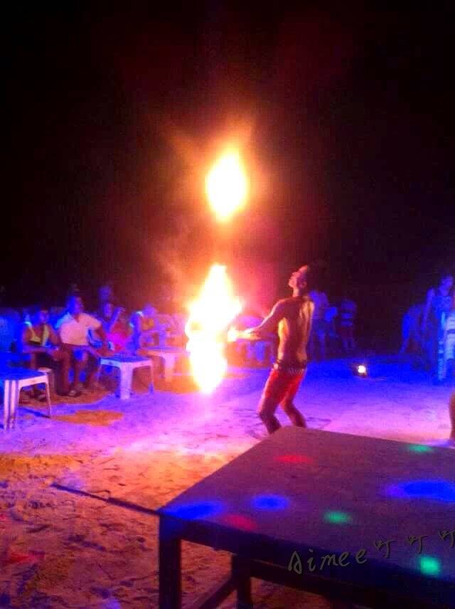 玩耍到差不多7点,突然刮起风,想下大雨的节奏,飞快的赶回岸上,把鱼丢去餐厅加工,洗了个澡就下来,元宵节的晚餐就是两条鱼,可惜口味问题,又煎又炸,新鲜的鱼儿都浪费了,吃了几口,暴雨就下起来,还好海边的雨真只是下了就过去,因为昨天是泰国的佛教节日,海边的fire dancing 停止了,雨停后马上就赶去海边party!!