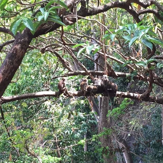 路上这些让人又爱又恨的猴子,上山请谨记拿好手中的物品,一不小心就会被抢走!