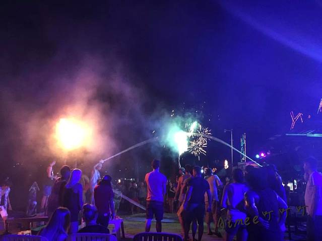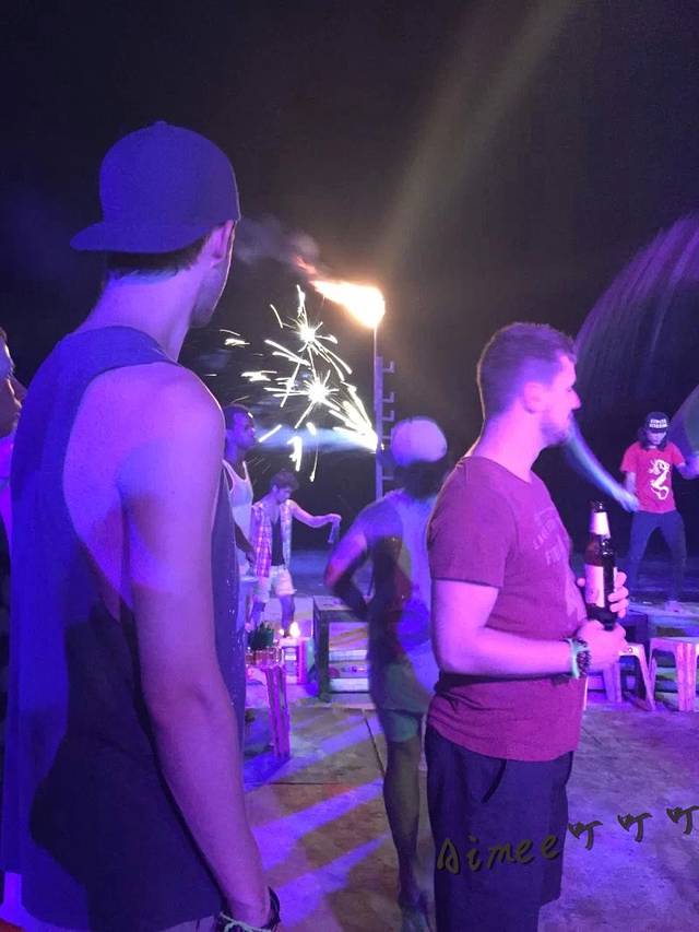 大 皮皮岛的娱乐果然成熟,岛上的party赶脚比之前在沙美岛的海边party规模小,但是大家完全不受雨后的影响,跨火圈,(勇敢去走几圈,就有免费鸡尾酒喝)烟花,海边跳舞,各种high,两只妖魔鬼怪,玩耍到2点才舍得回去睡觉,结果因为喝了酒,一晚上觉得口渴,反复起床喝水!