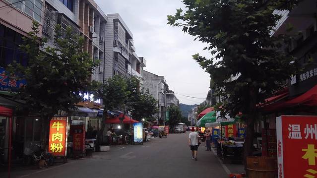抵达丽水街的时候天还没黑,找了家宾馆住了下来,150元大床房,有车位,房间挺大的,还有一台麻将机,就是感觉有点脏。。。稍微休息了一下,就出门找吃的去了,小镇上,大排档很多,不知道为啥我特别吃不惯南方的东西,找了家牛肉面,填饱肚子,等待天黑,再进入古街。