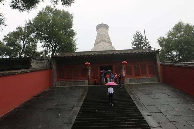 走出塔院寺,回望白塔四周,正好当的那句“山色空蒙雨亦奇。。。。”