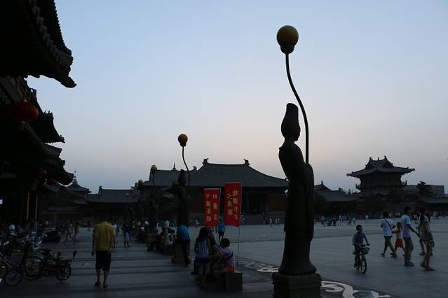 步行到华严寺前时,寺门已闭。广场上人群如织。。