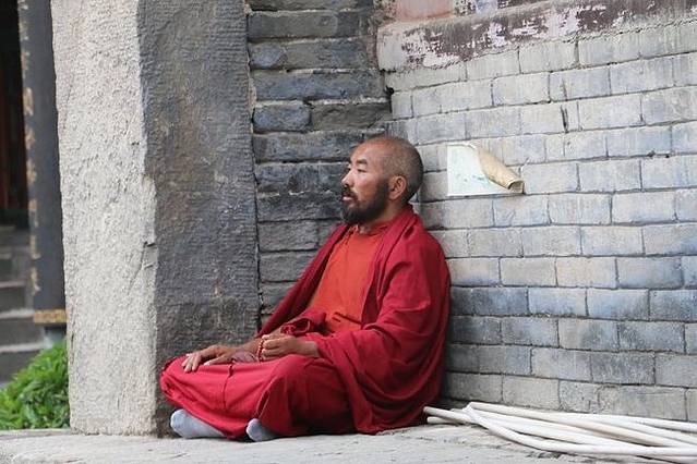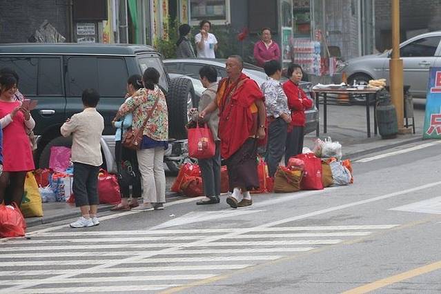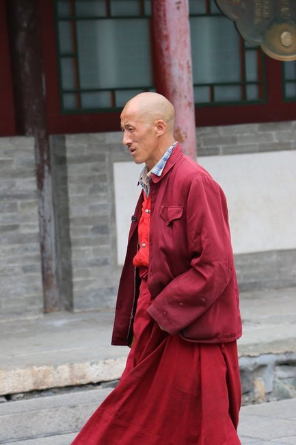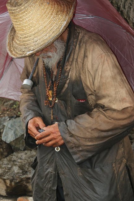 出门右拐,沿路以白塔为方向,赴塔院寺。路上,遇到一个癫僧和一个乞讨的老人。看我拍照,那癫僧对我说“我这长相可对不起祖宗!”。其实我确实没有拍他,但还是对他笑笑,道了个歉。五台山卧虎藏龙,看他垢衣百结、怪眼乱发的样子,没准是刻意如此的,可能修为高深。让我想起了济公活佛;这个老人的衣服比那癫僧“干净”不到那里去,胸口那串佛珠昭示着他要么真的就是个乞丐而已,要么也是个修行多年之人。