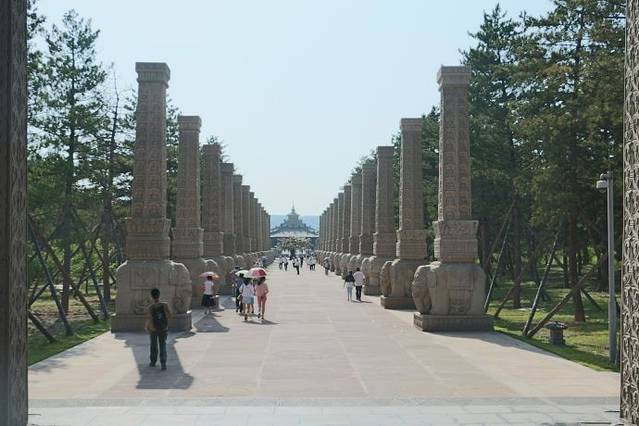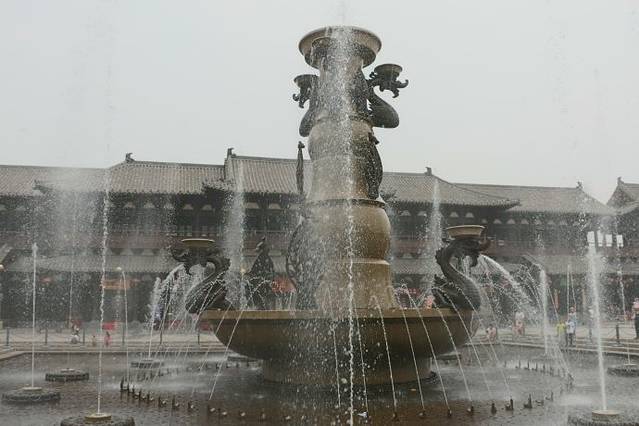经过昙曜广场、佛光大道、礼佛浮雕墙,来到灵岩寺前,这里叫做山堂水殿倒也着实贴切。