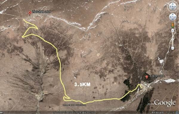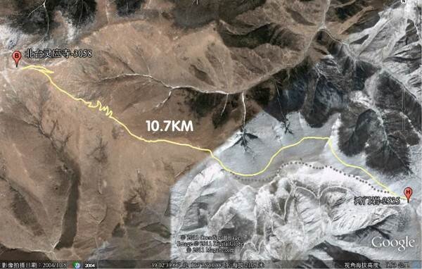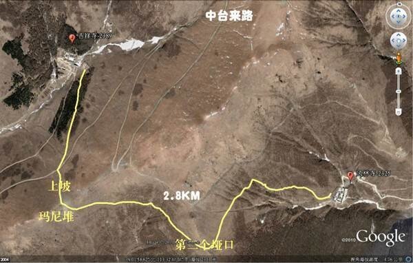 从东台顺小路回到鸿门岩。从鸿门岩到北台有公路和小路两条:沿着公路向左(西)往下走通向台怀镇,在公路的右手(北)边可发现一条小路,是通向北台的近道;沿着公路往右(东)走一小段,在鸿门岩的牌楼前可发现三岔口,左手(北)边那条是通向北台的公路,右手边是从车站来的公路。沿着公路走比较单调,走小路路一直都很顺,在走到一个三岔口之前没有明显的岔路,在三岔口走右手边,此时可看到右边的公路,这时可顺小路一直走,直到下到公路上。沿公路向前,走到华北屋脊脚下,向上是盘山公路,一般都是沿小路直着切上去的。从东台到华北屋脊的牌楼,在牌楼下有较大爬升,加上路上的休息,这段路程约需3.5小时;