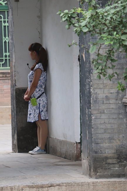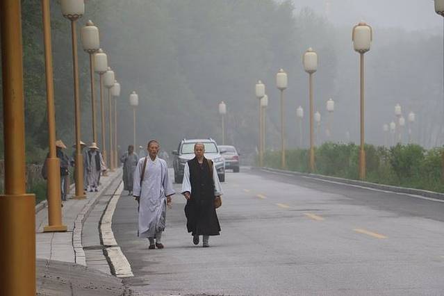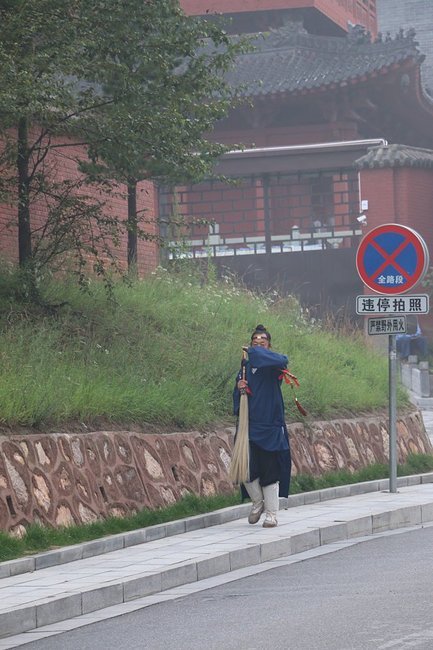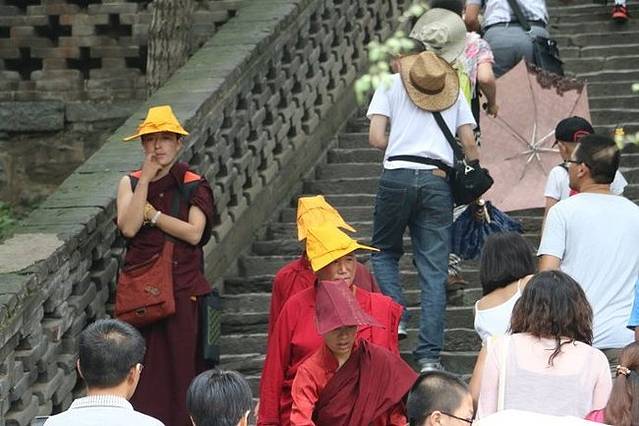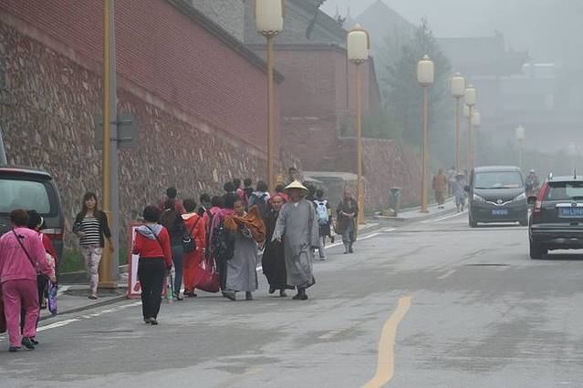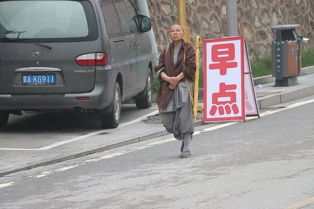 显通寺门前斜坡,一个女尼跪在那里,满脸苦相或者委屈。像是,在受什么责罚。。。