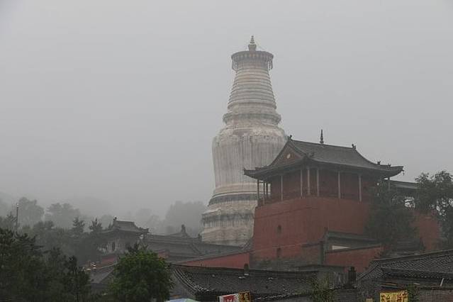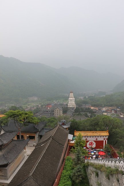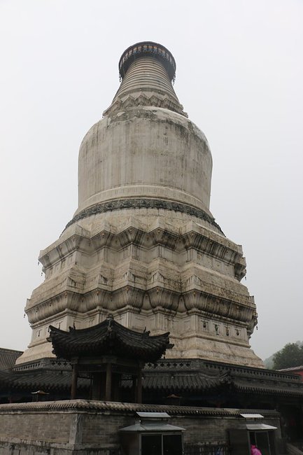 从菩萨顶看台怀镇白塔。沿一百零八级石阶登高,按照佛家的说法,就把人间的一百零八种烦恼踩在脚下了。五台山很多这种台阶,都是一百零八级,比如这里,比如南山寺,比如龙泉寺等等。。。