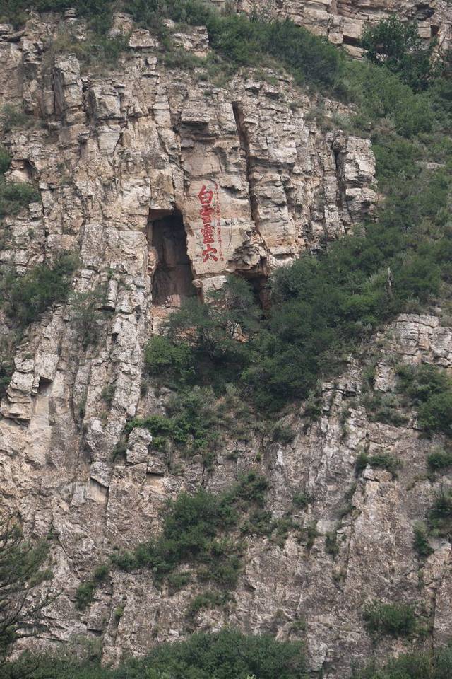 对面的崖壁上有白云灵穴四字。据说每次大雨将至之前,这里就会有白雾喷涌,蔚为奇观。