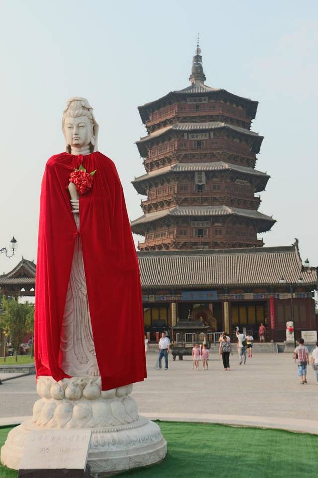 它的名字叫释迦塔,我第一次见到它的样貌还是在邮票上,后来是在具体而微的深圳世界之窗。再后来,就是读梁思成和林徽因故事以及前者所著的《中国建筑史》中被提及的。而今天,才真正第一次体会了身临其境的震撼。