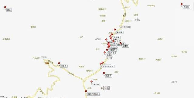 台怀镇寺庙之多,无法计数,没有重点恐怕走上两三天也不一定尽览无余。标记的地方除了殊像寺和黛螺顶因为天气故意错过之外,都是自己走过的地方。方便快捷处需要结合景区游览车,如: