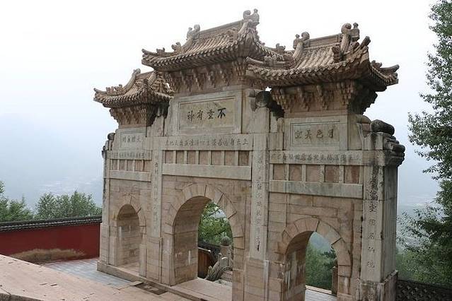 3、东台-华北屋脊:一路上行,平坦宽敞的石板路,行车方便。有“之”字型地段。徒步有小路可斜切,高山草甸,部分路段有古朝台之石阶路。距鸿门岩三分之一位置有小庙法云寺。距台顶三分之一处有华北屋脊牌坊。这是最长的一段路,徒步大约3-5小时。