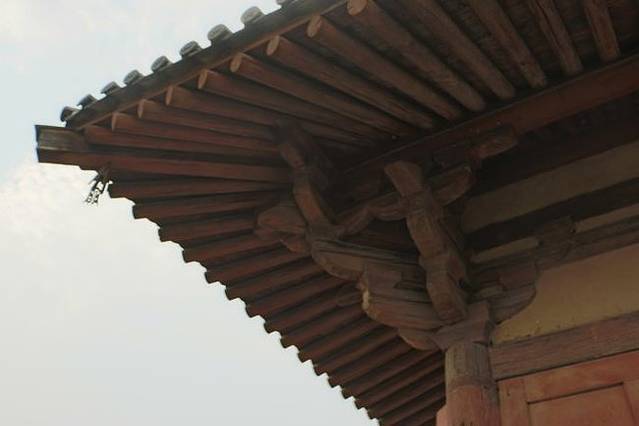 抬头看着这制作极为简练的檐墙梁架发呆,一千两百年的风霜到底该是一个什么概念? 这些角柱、斗拱、梁枋的结合为何能这般的稳固?这问题,恐怕要结合建筑、物理和历史学知识才能做出解答吧?