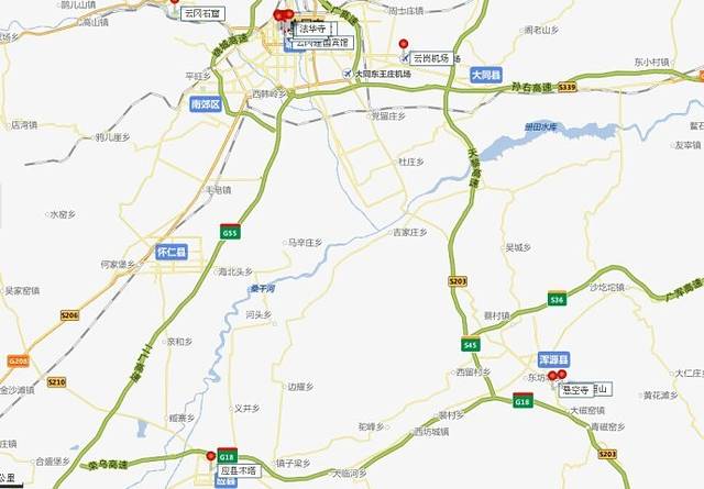 这几个景点比较分散。悬空寺在浑源县城南约八公里,恒山景区距离悬空寺只有二三公里,而这两处距离大同市区约七十公里,在他们的西边是应县,距离60公里。若是在大同坐长途车前往的话,要乘出租车先去东关, 或者从大同汽车站乘坐11路公交6站路到东关。然后坐去浑源县的大巴,去了浑源以后就有去悬空寺和恒山的旅游车,每15分钟一班,票价好像是26元. 再就是大同火车站对面直接有小巴去悬空寺,30元。另一个办法就是到浑源县城再包车。因为悬空寺、恒山、应县之间没有直接的长途车或者公交,要碰机会。还有拉客的黑车众多,可能有不安全或者不愉快因素,早作打算才没有后顾之忧。
