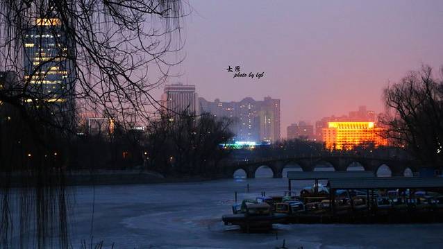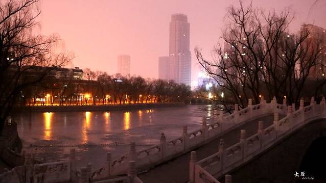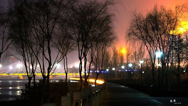 女儿买了很多焰火,要觅地燃放。驱车滨河东路,往日川流不息的汾河已经结冻,往日散步奔跑的人群也寥落无几。这冬季的肃杀和刚才的热闹相比,仿佛两个世界。。