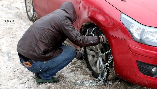 装了防滑链和不装时的期待无雪道路相反,无雪的坚硬路面让行车颠簸异常。担心的不是舒适,是轮胎的磨损。换一个也就罢了,两个轮胎若都出状况,这群山逶迤中去哪里找汽配店?