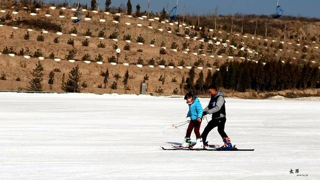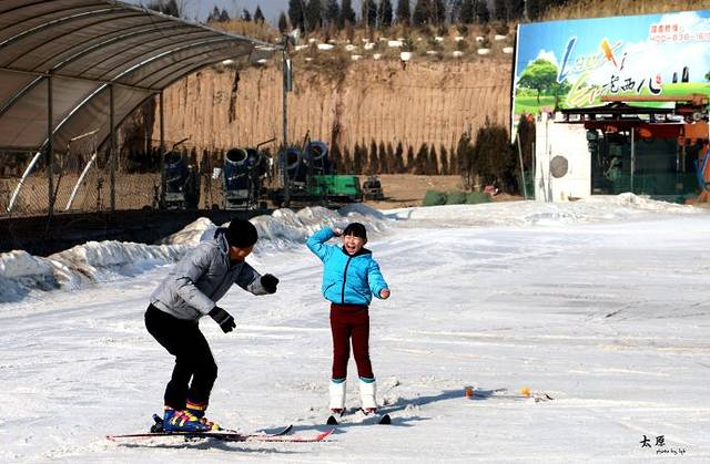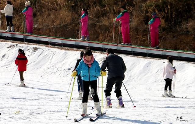 此处叫九龙滑雪场,位于太原城东南方向,靠近武宿国际机场。紧靠旁边的还有一个五龙滑雪场。至于东北方向的曦岭滑雪场和西南方向晋祠后山的龙山滑雪场,这丫头在后来的几天里玩了个遍。。。
