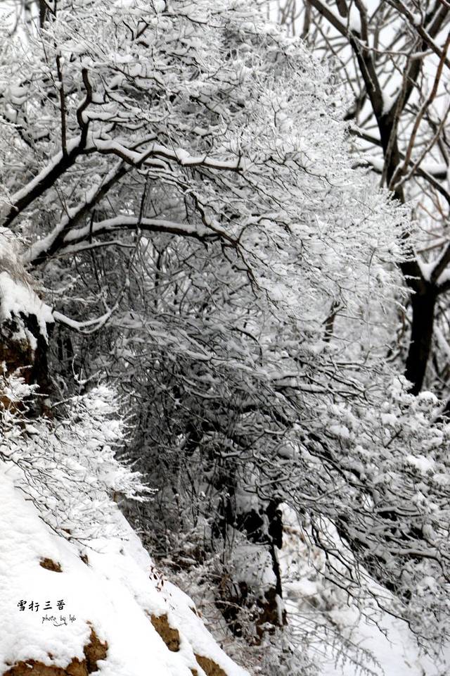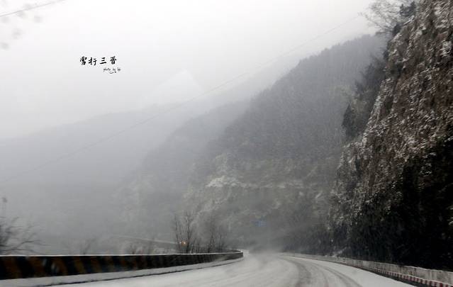 中午时分,驶入晋庙铺镇。而从晋庙铺到常平乡的这段路,自古就是由晋入豫的“茶马古道” ,称作碗周线。山路曲折蜿蜒惊险万端,因人迹罕至,雪景是如此的与众不同。。。