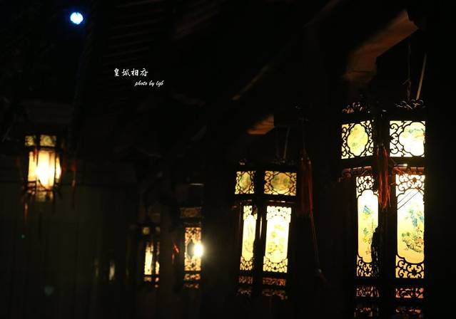 在古城的小巷中穿行,向着落日的方向。安顿已毕,带一家老小出门觅食,古城张灯结彩,一片喜庆。。。