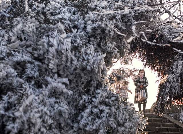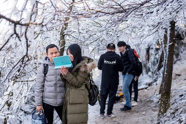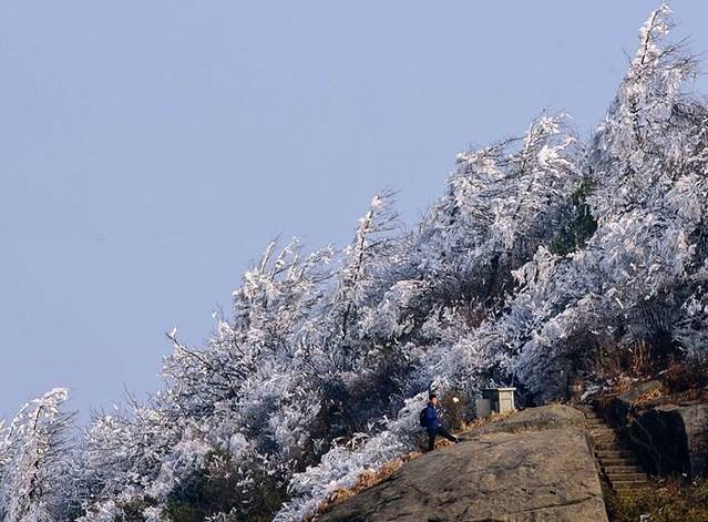 第二天出太阳了,由于雾凇只有在祝融峰北面有,所以我们直接上祝融拍雾凇啦。非常漂亮哦,没有白来啊。
