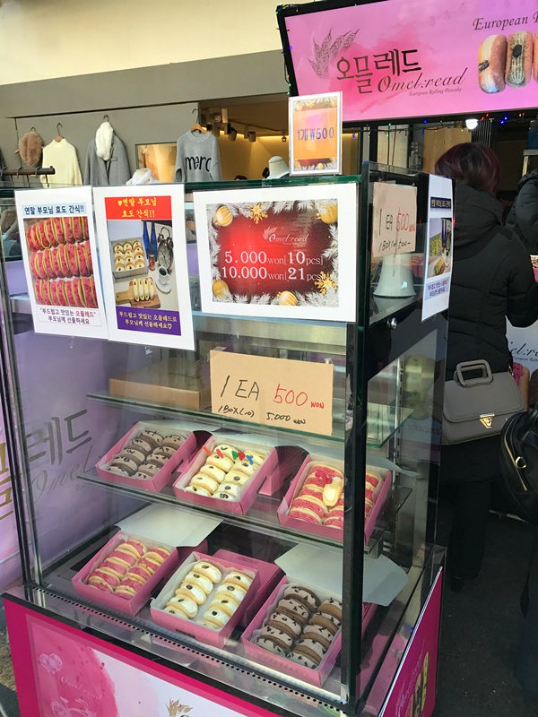 韩国的物价好像是有点儿贵呢,还是我俩是在太能吃,明洞一游,吃的消费1000rmb以上~~哇,好可怕!!