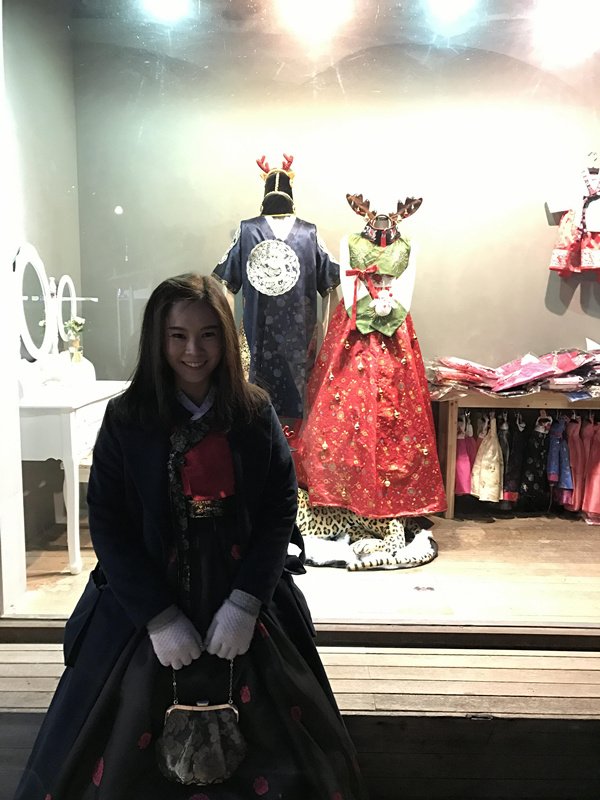 冬天去的小伙伴儿,还是不太建议租韩服啦,因为实在太冷啦!!!cindy姐姐里面套了一件毛衣,依然不敢脱掉大衣,拿不出手哇~!!冻死宝宝啦~~