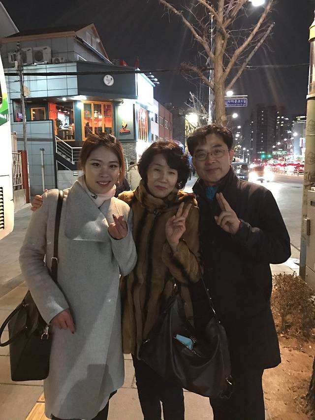 首尔的夜晚,很冷的,老板娘一路都抱着,揣着我的手,知道店门口~~