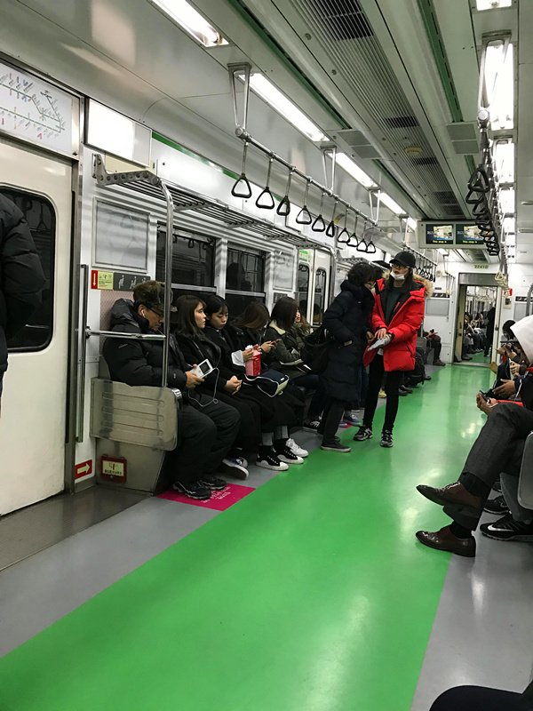 首尔的地铁比北京宽敞,可以并行站立3个人的样子。其他一样,一样有发小广告,一样有地铁乞讨,一样有各种形形色色。。唯一一点,没有在地铁上吃东西哒。