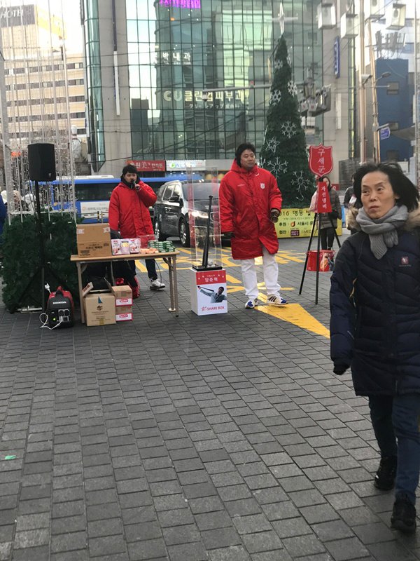 在明洞街头的爱心公益活动,看到了一名人!!给个线索,打棒球哒,韩国人民都知道~~