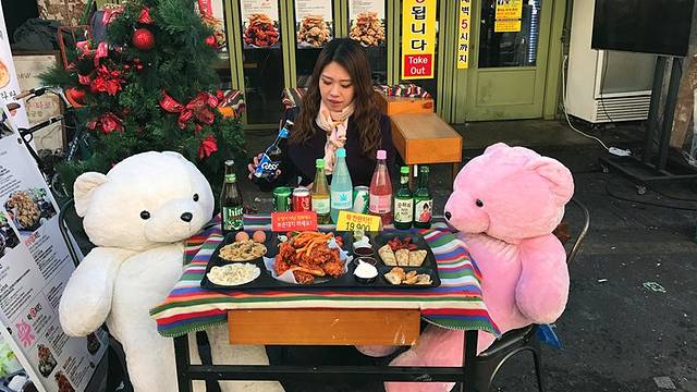 炸鸡店老板只会说韩语,所以我们只能瞎点一通,竟然把18000看成1800