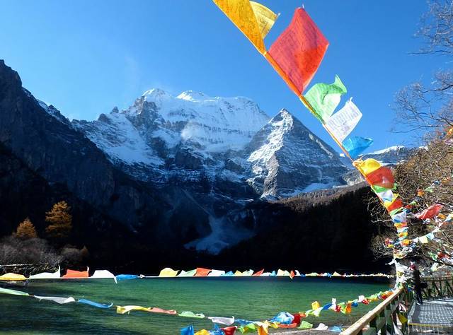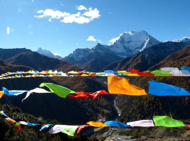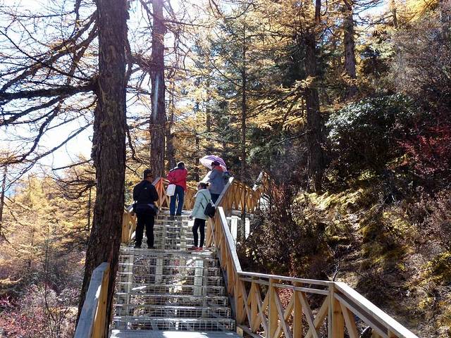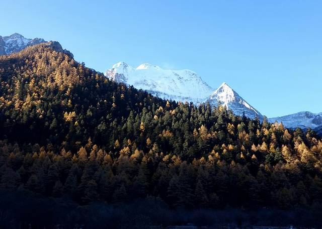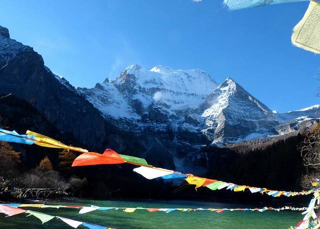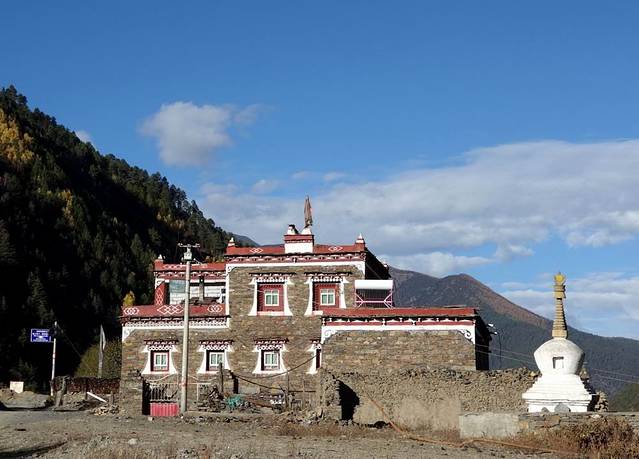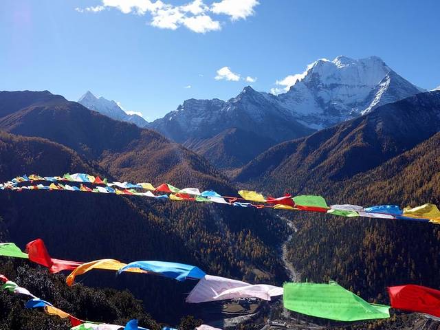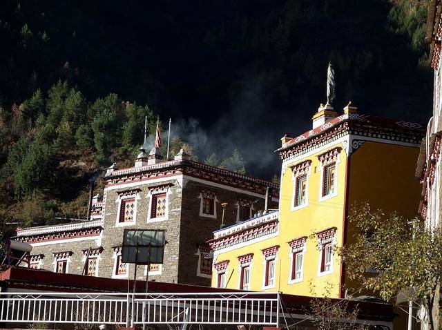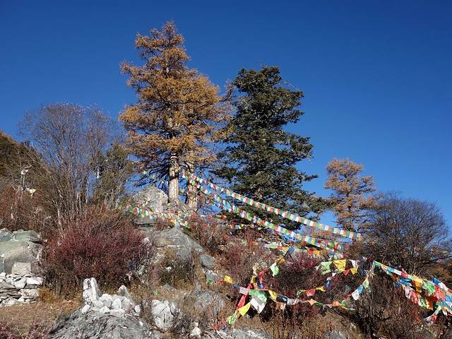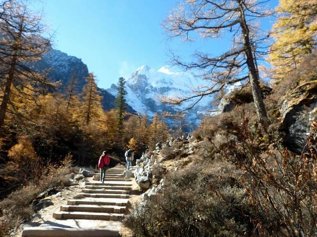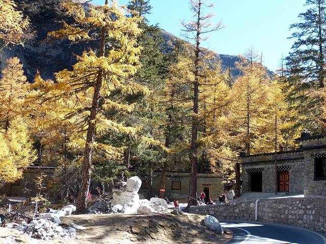 导游今天给了我们一上午自由活动的时间。我今天的行程是从亚丁村经冲古寺去珍珠海。照片摄于冲古寺下。