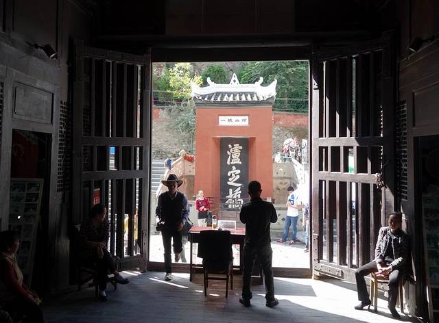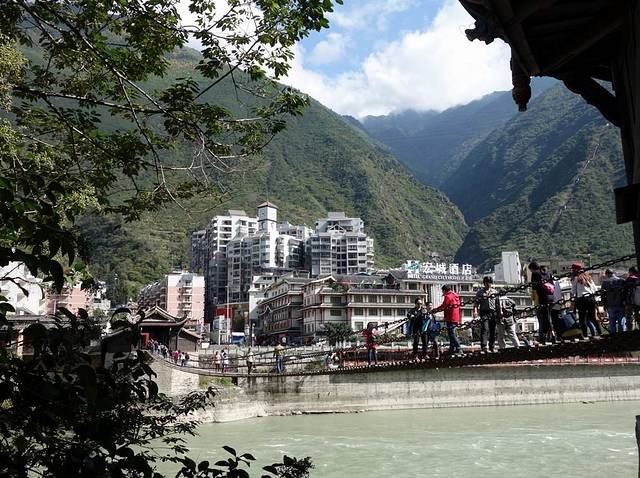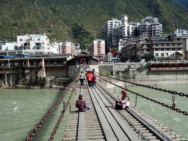 参观泸定桥是自费项目,每人10元。走在铺了桥板的铁索桥上,人还觉得不稳,不知当年光光的铁索上,红军是怎么过的……