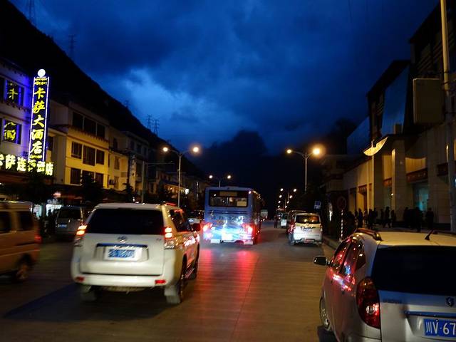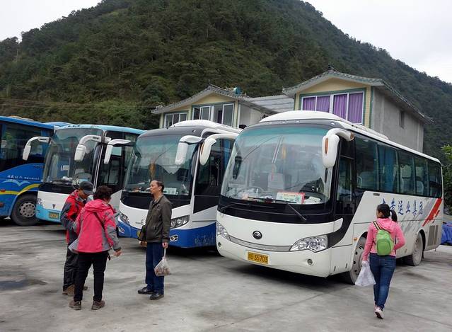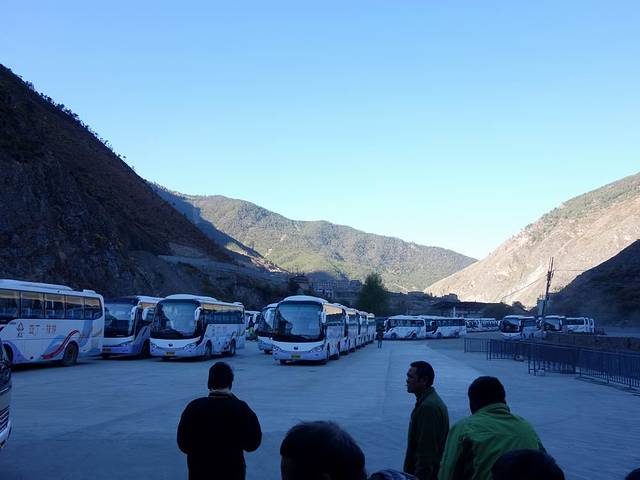 亚丁风景区的门票150元 /人 。从景区大门(香格里拉乡)到核心景区附近的亚丁村,还有四十公里的距离。为了保护环境,必须乘坐景区的观光车才能到亚丁村。观光车车票120元/人(往返)。图为观光车乘车场。