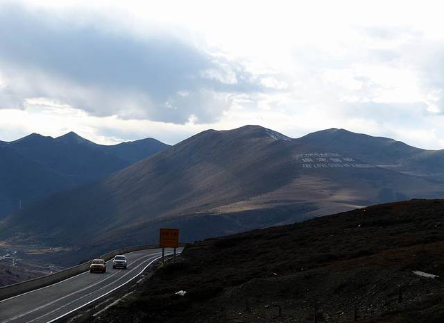 清晨从新都桥出发,出新都桥镇沿318国道向西北方向约3公里处,川藏公路一分为二,318国道向左拐称为川藏南线,而向右经塔公与317国道相会的称为川藏北线。车过东俄洛村不久开始翻越海拔4412米高尔寺山。照片摄于高尔寺山。