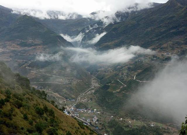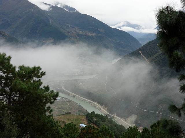 今天的天气有些阴沉,图为被云雾笼罩的大渡河谷。