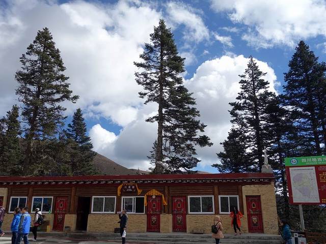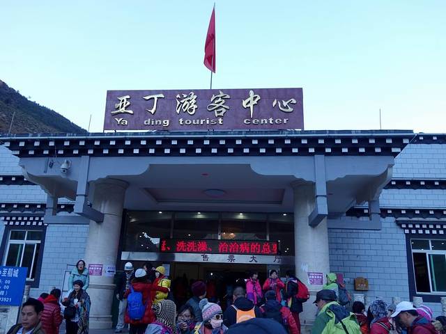 亚丁风景区位于稻城的东南,从稻城到亚丁,需要走3个小时的山路,但是这段路修的极好,全是柏油路,路面宽敞平整。亚丁风景区,位于甘孜州南部稻城县日瓦乡(现更名为香格里拉乡)境内。景区海拔2900米(贡嘎河口)至6032米(仙乃日峰),面积6.84万公顷。景区以仙乃日、央迈勇、夏诺多杰三座雪峰为核心区。由于特殊的地理环境和自然气候,形成了独特的地貌和自然景观,是我国保存最完整的一处自然生态系统。被誉为“最后的香格里拉”和“水蓝色的星球上的最后一片净土”。这是亚丁风景区的游客中心。
