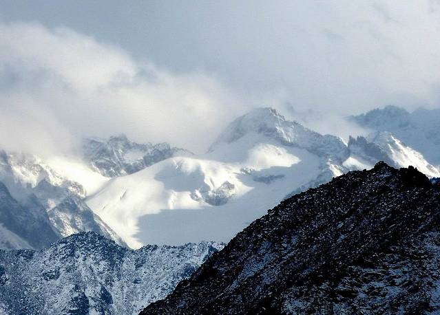 天气晴朗时,在过剪子弯山的这个垭口,可以看到贡嘎山的主峰。但今天贡嘎山主峰已经被白云笼罩。幸运的是,归程时我们终于能一睹贡嘎山主峰的风采。