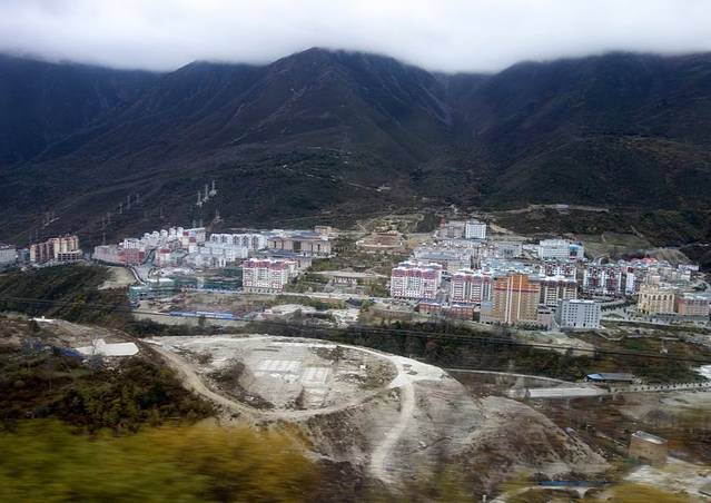 康定是我国西部地区重要的历史名城。“跑马溜溜的山,康定溜溜的城……”一首优美动人的《康定情歌》,使康巴高原上这座历史文化名城享誉海内外。图为车上拍的康定县城。